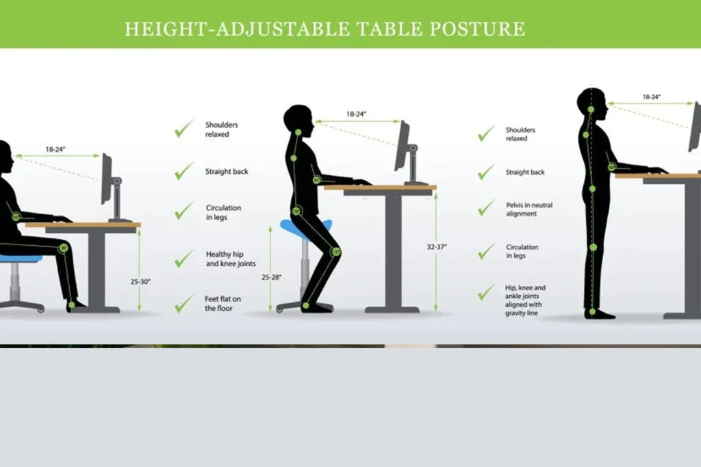 - Movement through an adjustable standing desk can promote healthy blood circulation to various parts like the legs, glutes and core muscles.
